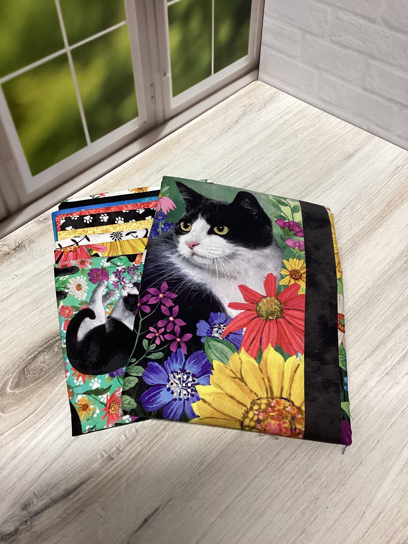 Finished size: 38" x 51". Confident Beginner - precise cutting and multi-block construction. This attic window quilt is quick and easy to put together. With a half-square-triangle patch in the corner of the window, there are no difficult miters or "y" seams. Start with the 6 window blocks and add the asymmetrical 4-patch border to finish off the design. This quilt can be made with any 24" panel and the 4-patch border is fat eighth friendly.