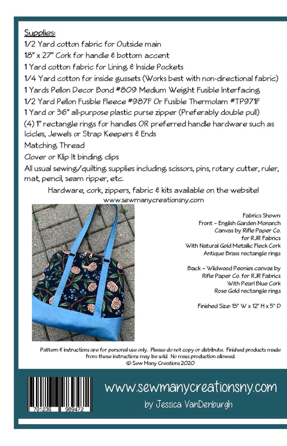 - 1/2 yard cork for handles or bottom accent