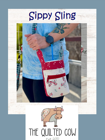 Adorable Sling Purse to carry your favorite beverage, a boxed corner makes this an easier sew than most other beverage carriers!