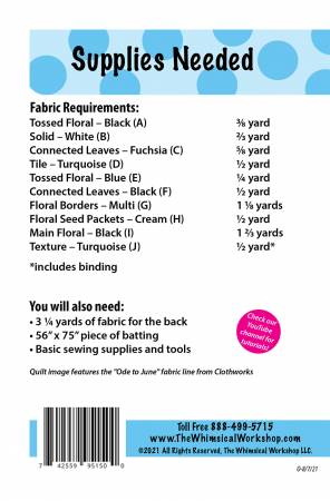 48in x 67in Advanced Beginner, Pieced project featuring the Ode to June fabric line from Clothworks.